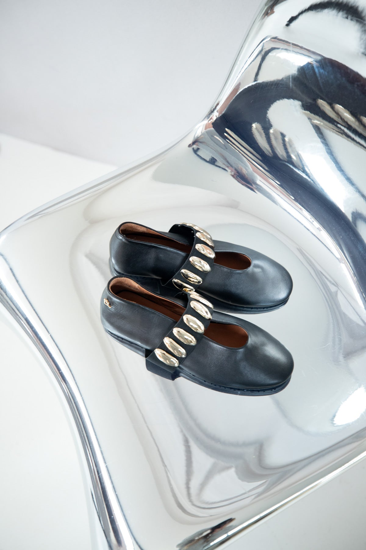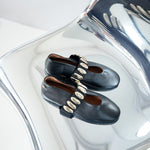 Stap in de wereld van luxe met onze opvallende ballerina's, versierd met mooie studs die een twist geven aan deze klassieke schoen. Deze ballerina's zijn perfect voor de modebewuste vrouw die haar outfit een edgy en verfijnde touch wil geven. Gemaakt van hoogwaardig materiaal, bieden ze niet alleen comfort maar ook de perfecte pasvorm voor elke gelegenheid. Voeg een vleugje glamour toe aan je look en laat je persoonlijkheid stralen met elke stap!