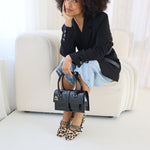 Dieser atemberaubende Ballerina im auffälligen Leopardenmuster ist ein absolutes Must-have. Die Kombination aus eleganter Silhouette, zartem Riemchen und markanten Nieten macht ihn unwiderstehlich stylisch. Tragen Sie ihn als Statement-Piece zu einem minimalistischen Outfit oder setzen Sie mit einem ausdrucksstarken Look ein Statement. Bequem, schick und voller Charakter – perfekt für die Frau, die gerne auffällt.