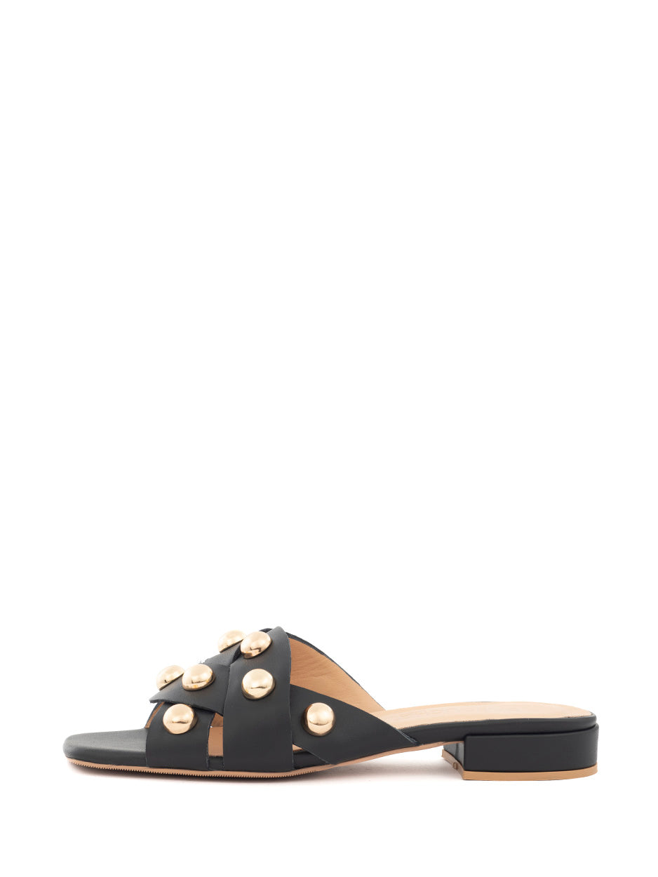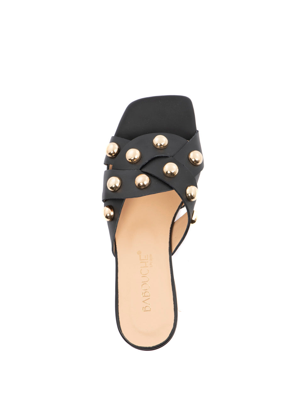Add a generous dose of style to any look with these leather Babouche slides , featuring gold-colored studs. These slides with a wide strap are handmade from beautiful Italian materials and quality that will conform perfectly to your feet.